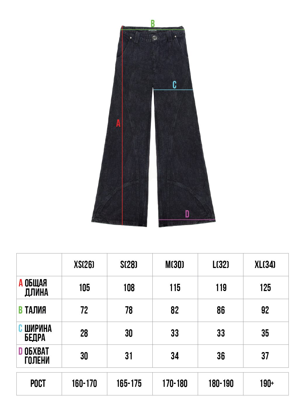 Черные вываренные джинсы из денима с итальянской фурнитурой. Прошли энзимную варку, что придает им винтажный вид с эффектом легкой потертости на швах и делает ткань более мягкой на ощупь. Дизайн дополнен декоративными - соединительными швами на штанинах и кокетках, которые подчеркивают детали. Главной особенностью данной модели является удлиненный крой и 35-сантиметровый клеш, начинающийся от колена, который добавит оригинальности любому образу.